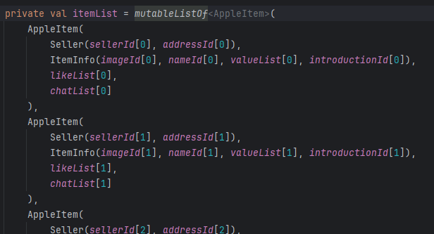 우선 제공된 더미데이터를 받아서 내부 데이터를 만드는 작업부터 시작했다. 각 아이템 별 게시글 이름, 주소, 상품 상세소개, 판매자 이름을 각각 다른 파일에 stringRes으로 저장했다.