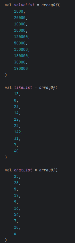 또한 가격, 좋아요 갯수, 대화 갯수 등 정수형의 데이터에 대해서도 아이템 순서에 맞춰 array로 저장했다.